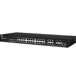CERIO CS-2000 系列型號:CS-2424G 是一款最新推出A3 版之高傳輸高效能 4 埠Combo Gigabit +24 埠 10/100/1000Mbps 網管型交換機,內建支援瀏覽器(web-browser)管理介面,可供管理者方便管理及取得所有區域網路詳細資料。屬於layer 2 管理機種,支援網路管理功能,管理模式支援Spanning Tree 與 Rapid spanning Tree 及 IEEE802.1Q Tag / Port base VLAN 功能及IEEE802.1p-based /Port- based QoS 流量控制支援WRR 流量管理及IGMP snooping,同時可控制layer 2 的頻寬管理以及迴路檢測及預防(Bandwidth control / Loop Detection) 等之大型企業網路安全管理。